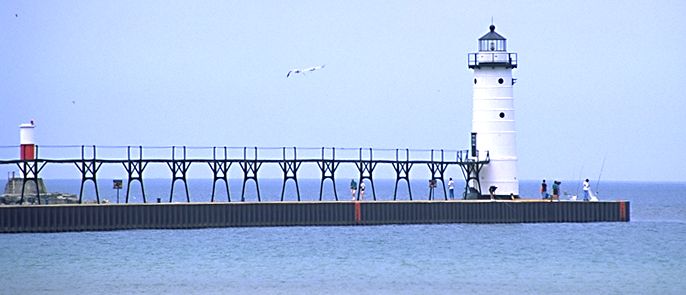 The Frankfort Breakwater Light is down at the end of Main St. It's light still shines from the original Fourth Order lens.